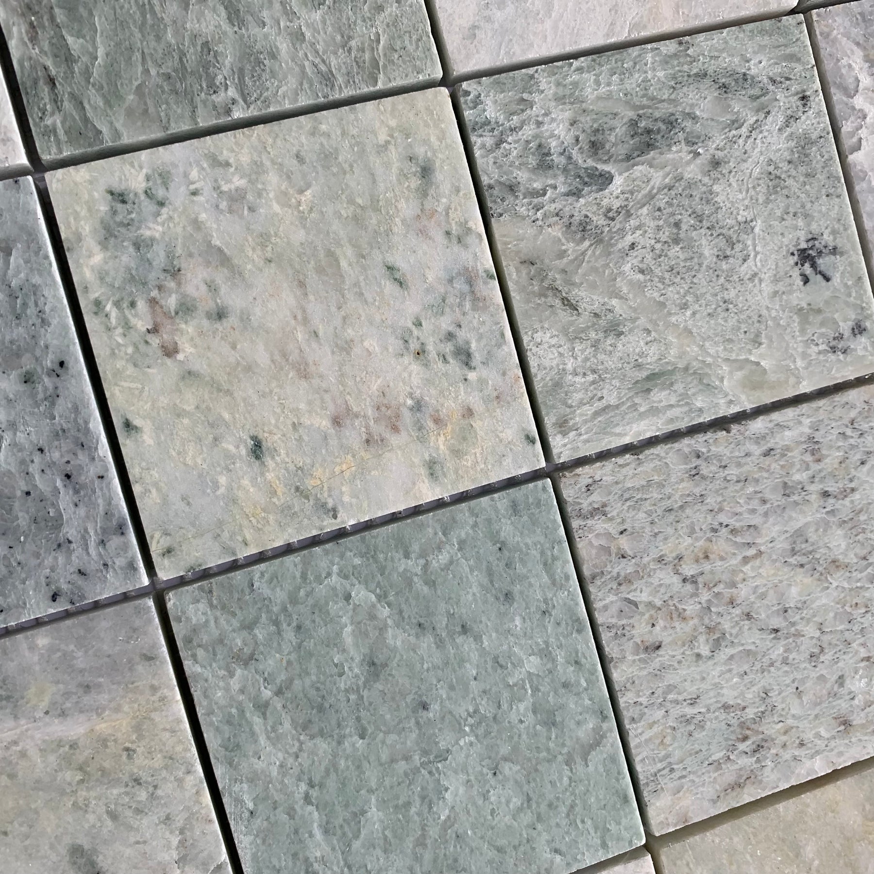 Ming Green marble is marbles newest best seller. The contrasting chip shades provide a varying colour palette with green tones to compliment a space.